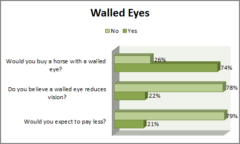 It's good news for anyone selling a horse or pony with a walled or blue eye, the results of our survey indicated that the majority aren't concerned. It did however, indicate that a similar number of people who expected to pay less also believed that it does reduce vision.